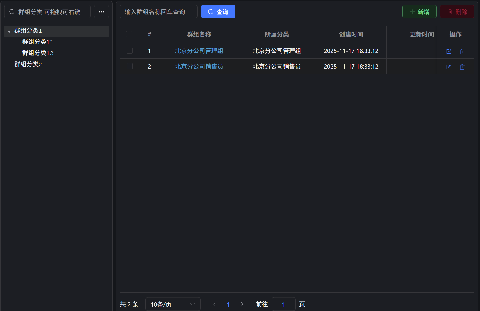 如果创建的群组比较多的时候可以另外创建些群组分类,用来归类群组。