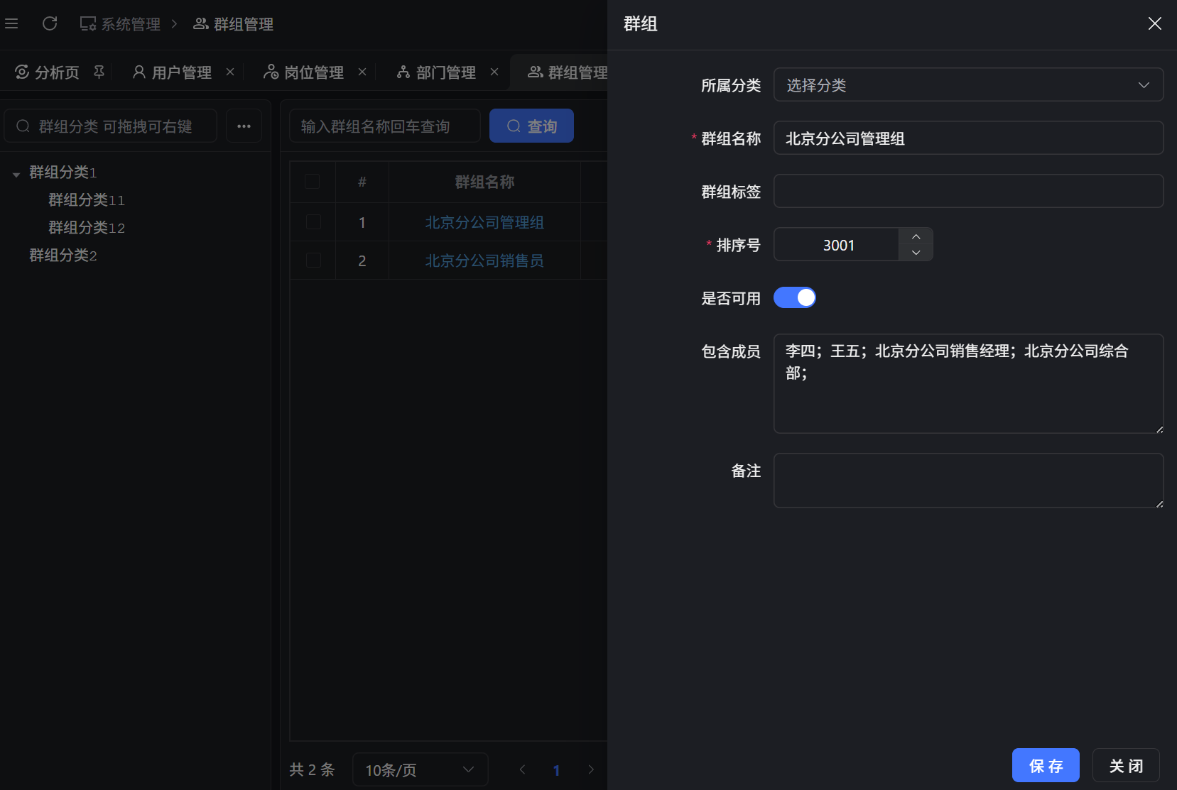 群组不归属在具体部门下。群组可以包含多个部门,用户或者岗位。