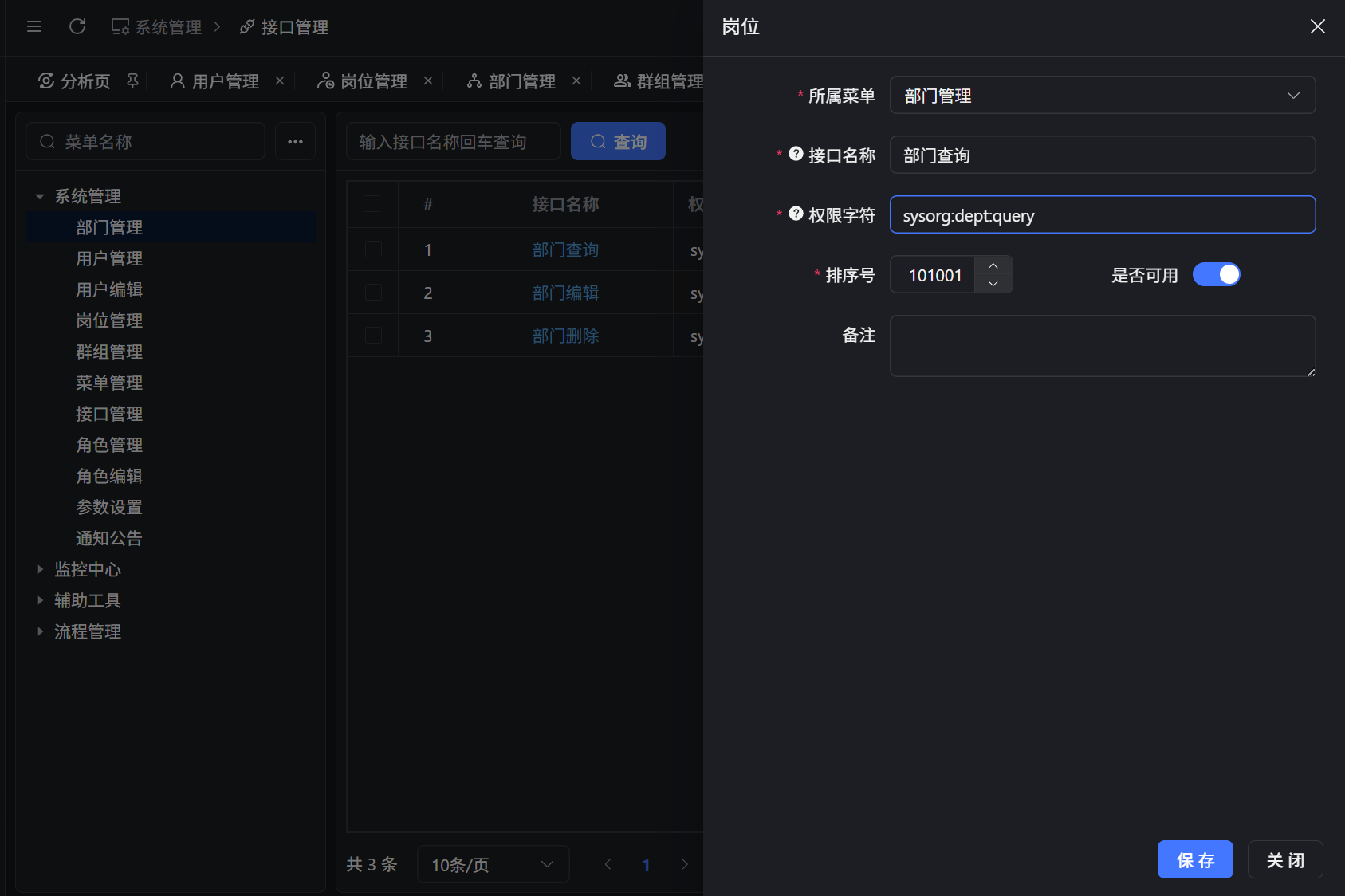 接口后台对应的是一组API接口,前台一般对应的是按钮。用于控制按钮的显示隐藏。